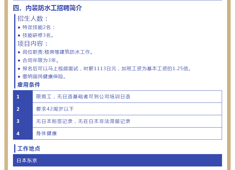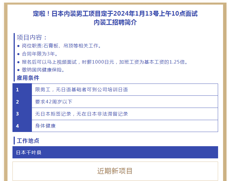【恒德國際】日本內(nèi)裝男工定于1月13號面試?yán)?/h2>